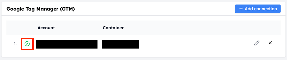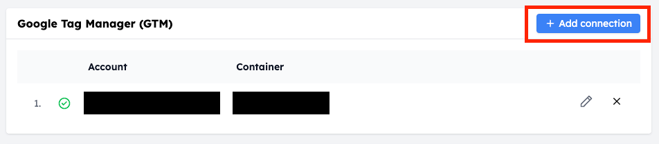 1. In the Google Tag Manager section, click on ‘Add connection’.